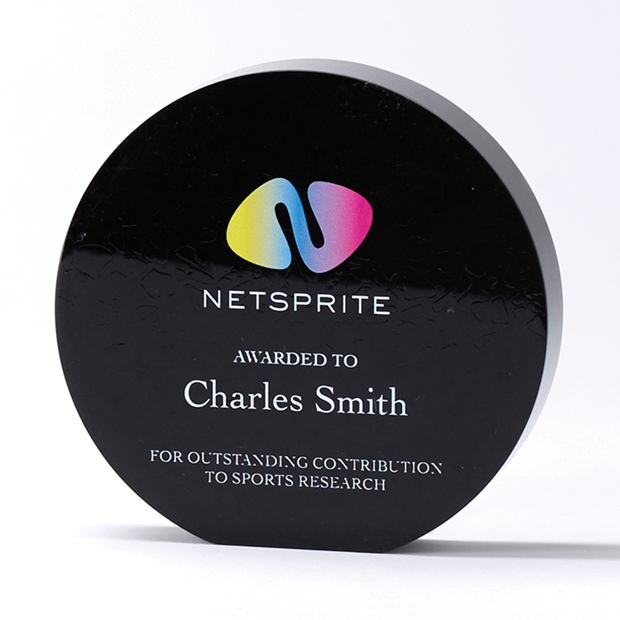 The recycled acrylic award is a stunning and eco-friendly way to recognize and celebrate exceptional achievements. Made from 100% recycled materials, the award has a unique and modern look that is sure to impress. The 15cm Diameter Circle Award is carefully crafted to showcase the natural beauty of recycled acrylic, with smooth edges and a high-gloss finish that adds a touch of sophistication. In addition to their impressive aesthetic appeal the recycled acrylic award is also environmentally responsible. By using recycled materials we are reducing waste and conserving natural resources, making these awards an ideal choice for organizations and individuals committed to sustainability. The award can be decorated with full colour UV printing. They are supplied in an individual gift box.