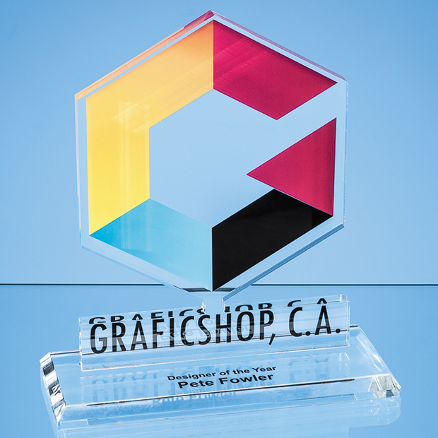 Acrystalic awards beautifully combine Acylic that can be cut into any shape or design which can then be full colour printed and mounted onto a clear crystal base to create a truly unique Acrystalic award. We specialise in creating bespoke pieces to your specifications. Unlike pre-made stock items, all of our products are made-to-order, ensuring a perfect fit for your needs. Whether you require a small award or a large display item, there is no minimum order quantity or size restriction, we can create it. Simply provide us with the materials, dimensions, and any specific details you have in mind. You have total Design Freedom, simply provide us with the materials, dimensions, and any specific details you have in mind. If you would like to see a physical representation before production, we offer pre-production prototypes for your approval. Expect a 7-10 day lead time for your bespoke creation.