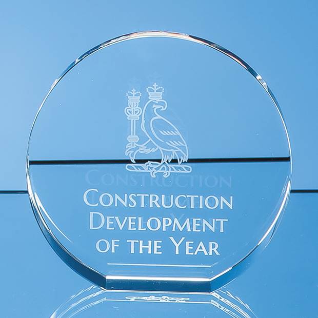Tapering in at the top, crafted in pure optical crystal this stunning contemporary round free-standing award comes in three sizes 10cm shown 13cm and 15.5cm It is ideal as a standalone presentation recognition or award but perfect also for 1st 2nd and 3rd place achievement whether sporting academic or corporate. With a generous area to engrave a crest company logo or message it comes in its own foam lined presentation box.