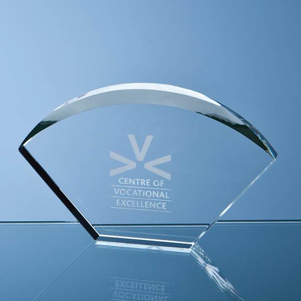 The elegant bevelled Arch Award is hand cut and polished out of perfectly clear 40mm thick optical crystal. It is available in 3 sizes and benefits from a large engraving area that can be personalised with any crest, logo or wording to create an award that is sure to take pride of place when put on display at home or at work. They are supplied in a black foam lined presentation box.