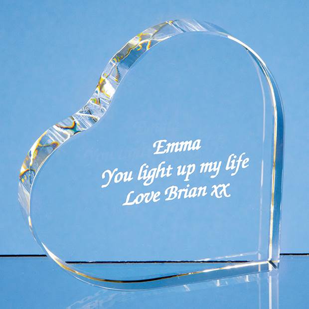 This optical crystal stand up heart is an ideal gift for a wedding or anniversary. It has a large engraving area that can be personalised with any logo, crest or wording.