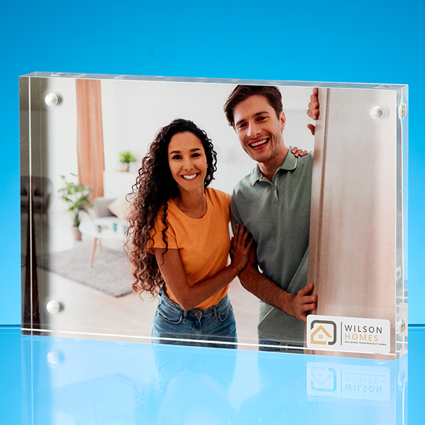 Showcase your photos in style with the ClearVue Premium Acrylic Photo Frame. The frame features a unique high-gloss hand-polished edge and a sleek brushed stainless steel back. For added personalisation, the front of the frame can be full colour printed with a logo, making it ideal for corporate branding, gift item or a great way to say Thank you. Please note the photo is not supplied with the frame.