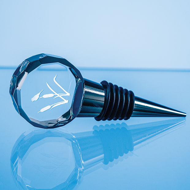 The 9.5cm Faceted Optical Crystal Bottle Stopper provides a captivating blend of functionality and elegance that transforms your wine and spirits experience into a work of art. Crafted with precision and unparalleled attention to detail, this bottle stopper is designed to preserve your cherished beverages in style while adding a touch of timeless sophistication to your collection. The facet crystal stopper can be sandblast engraved or sub surface engraved with a logo or wording that will create a gift that is sure to be treasured by the recipient.