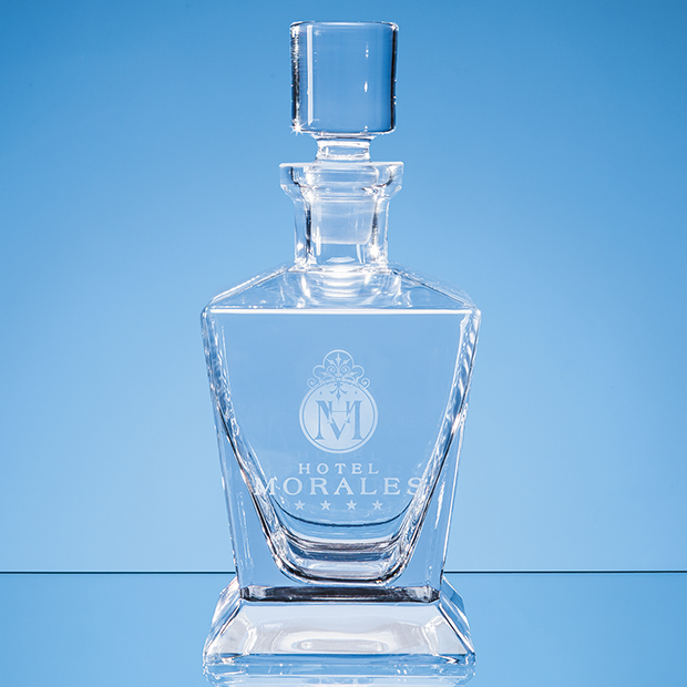 Stylish and modern this beautiful decanter brings a touch of elegance. It can be decorated in the traditional way with sand blast engraving or with our low fire decals that allow you to add colour logos and text to the glass.