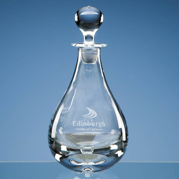 The teardrop decanter is modern in appearance and is hand made in lead crystal. It can be personalised with any crest, logo or wording to create a gift that is sure to take pride of place when put on display at home or at work.