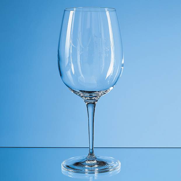 Not only will this elegant long stemmed 540ml Allegro wine glass take a half bottle of wine but there is space to engrave a message logo or crest Its the perfect gift for any occasion. And available as an option is a luxurious blue satin lined presentation box. Dont mind if I do